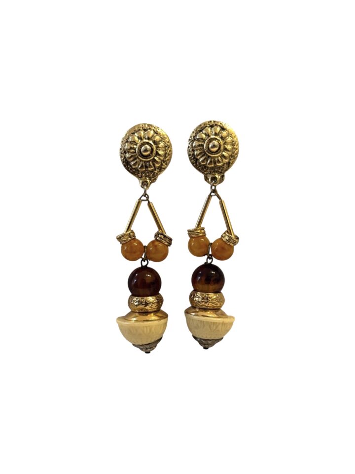 70s vintage but new golden earrings. Brown, gold and beige pearls. Light weighted. Clip-on earrings.