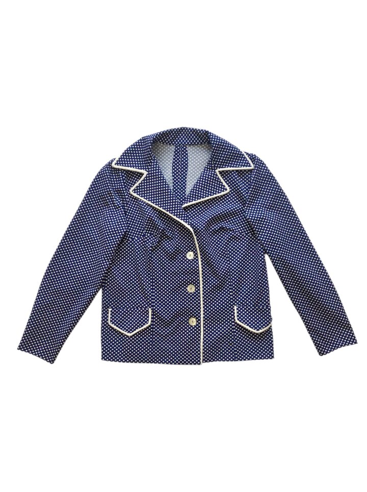 70s teal blue jacket. Rounded pointed collar. Button fastening. 1 tiny decorative pocket. 80% wool, 20% synthetic. Has a lining (except sleeves).